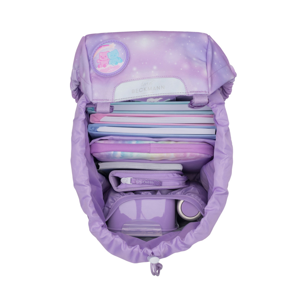 Für den perfekten Schulstart! Der Schulrucksack Classic Candy von Beckmann mit integrierter Regenhülle und Kletties zum Auswechseln.