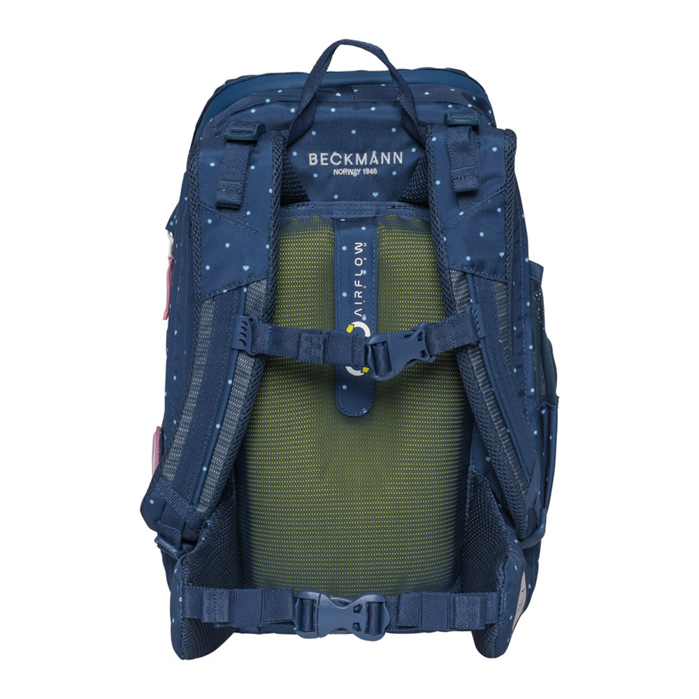 Die tollen Farben, Muster und Illustrationen überzeugen Ihr Kind und auch Sie auf den ersten Blick! Das Modell Active Air FLX bietet Platz für alles, was man für den Schulalltag braucht und ist so konzipiert, dass der Schulranzen das Gewicht dicht am Rücken hält. Der Schulrucksack ist mit einem Reissverschluss von 20 auf 25 Liter Volumen erweiterbar. Die Fronttasche kann je nach Vorlieben des Kindes gewendet und das Aussehen des Rucksacks so in Sekundenschnelle neutraler gestaltet werden. Alle Beckmann Schulrucksäcke werden mit Experten entwickelt und auf ihre ergonomischen Eigenschaften getestet. Die Schulranzen von Beckmann fördern die Rückengesundheit und reduzieren Belastungen.