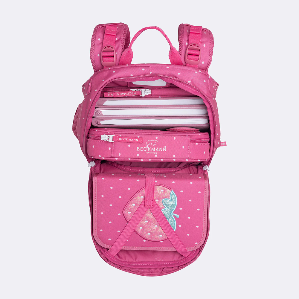 Die tollen Farben, Muster und Illustrationen überzeugen Ihr Kind und auch Sie auf den ersten Blick! Das Modell Active Air FLX bietet Platz für alles, was man für den Schulalltag braucht und ist so konzipiert, dass der Schulranzen das Gewicht dicht am Rücken hält. Der Schulrucksack ist mit einem Reissverschluss von 20 auf 25 Liter Volumen erweiterbar. Die Fronttasche kann je nach Vorlieben des Kindes gewendet und das Aussehen des Rucksacks so in Sekundenschnelle neutraler gestaltet werden. Alle Beckmann Schulrucksäcke werden mit Experten entwickelt und auf ihre ergonomischen Eigenschaften getestet. Die Schulranzen von Beckmann fördern die Rückengesundheit und reduzieren Belastungen.