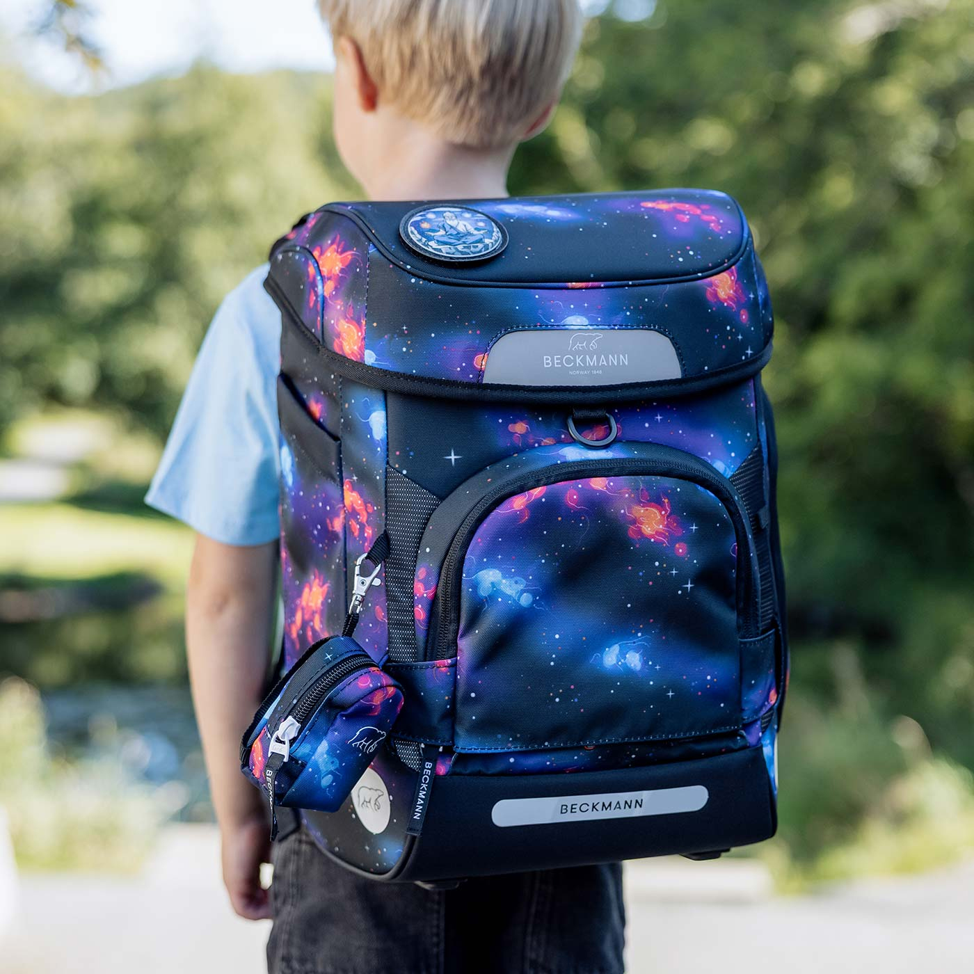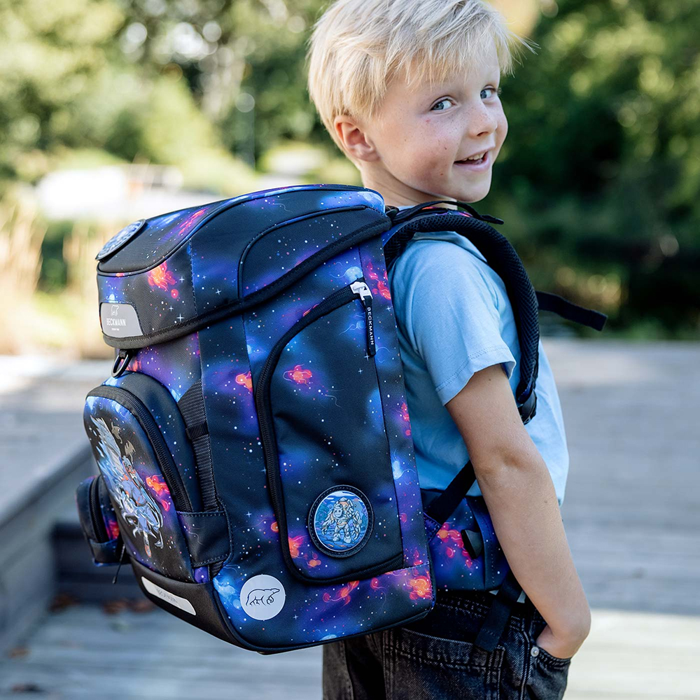 des Kindes gewendet und das Aussehen des Rucksacks so in Sekundenschnelle neutraler gestaltet werden. Alle Beckmann Schulrucksäcke werden