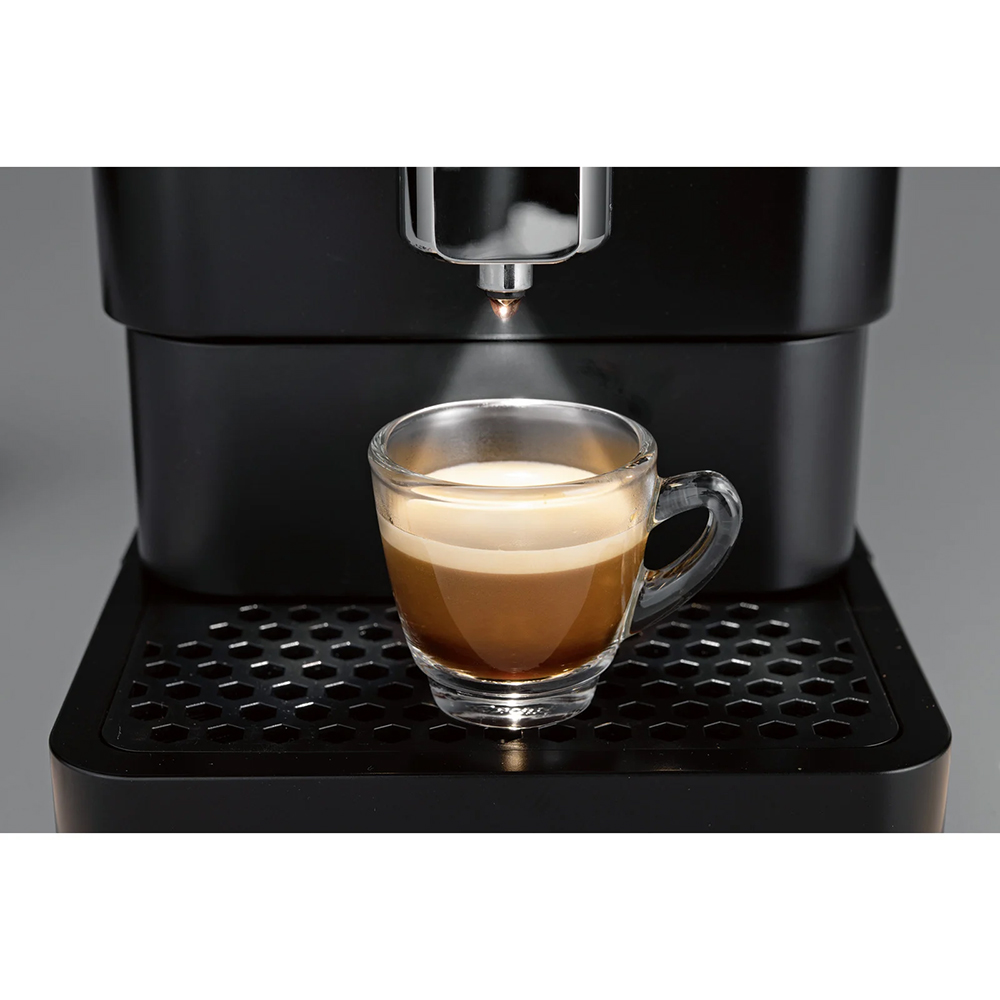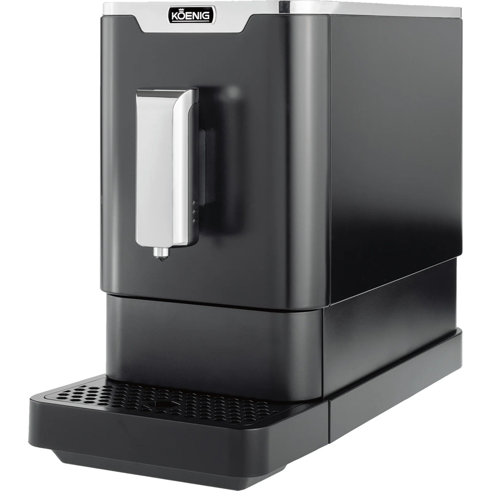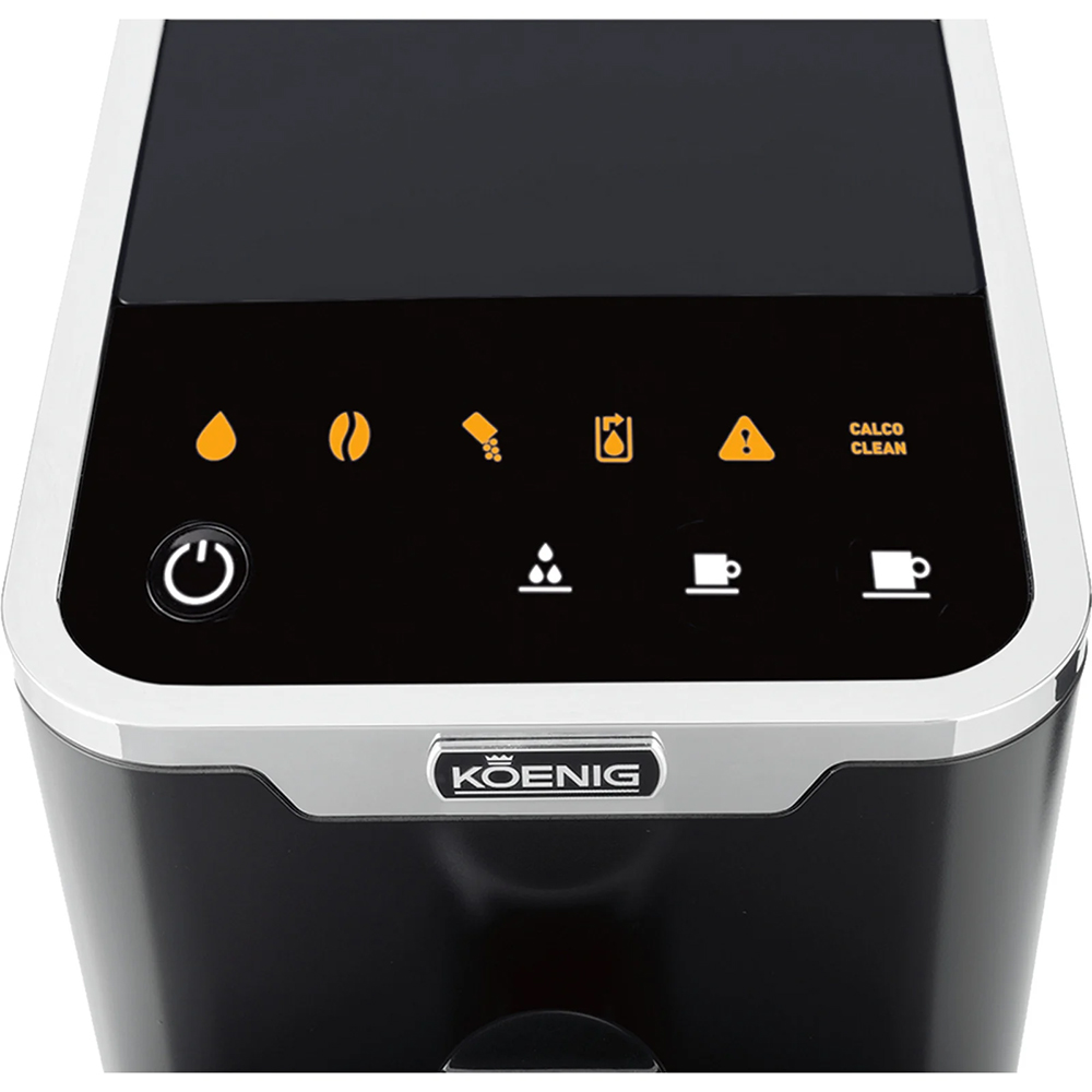 Diese Maschine eignet sich für jene Haushalte mit einem geringen Kaffeegebrauch sowie knappen Platzverhältnissen. Die Vorbrühtechnolgie lässt die subtilieren Aromen stark entfalten. Die komptakte Brüheinheit lässt sich für die Reinigung ganz einfach Herausnehmen. Die Finessa von Koenig verfügt ebenfalls über eine innovative LED-Tassenbeleuchtung sowie ein Entkalkungsprogramm.
