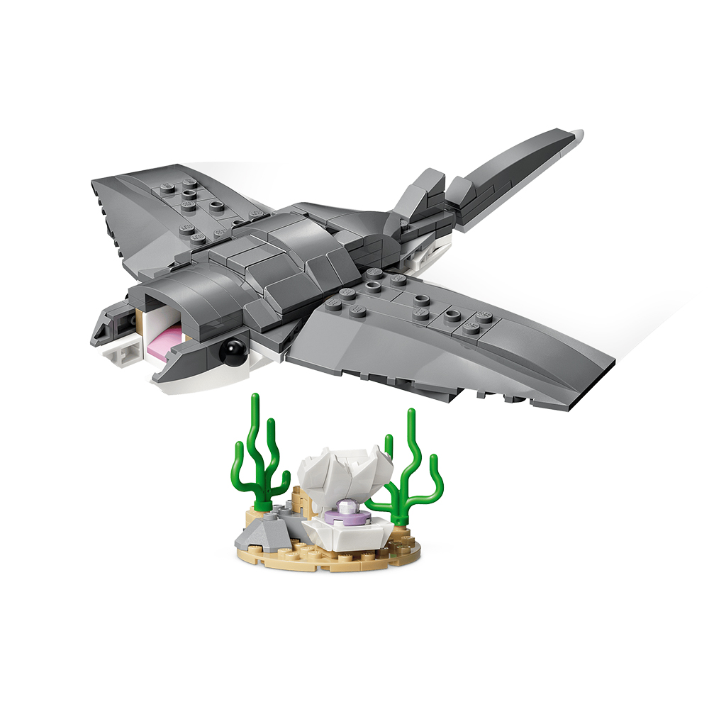 • Kinder können sich auf spannende Geschichten mit 3 Spielzeugmeerestieren – einem Hai mit Schatztruhe, einem Seeteufel oder einem Mantarochen – freuen. Die Modelle können jedoch nicht gleichzeitig gebaut werden
