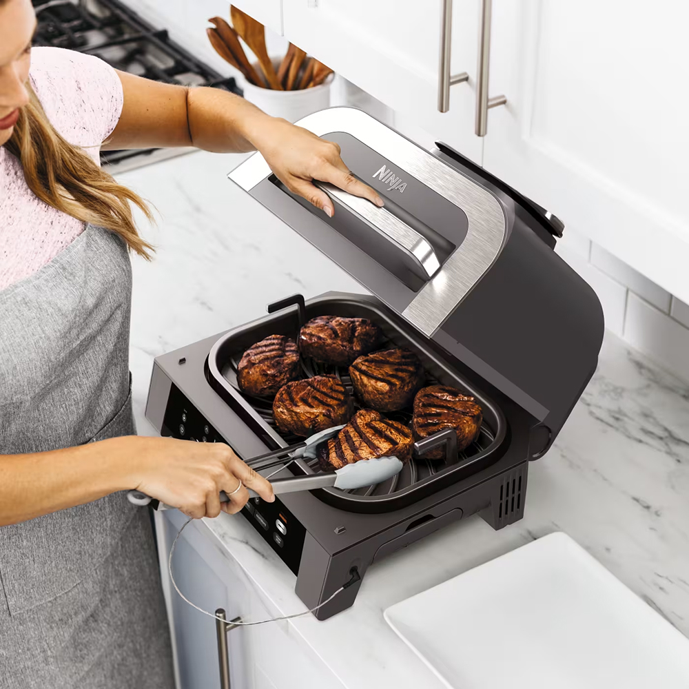 Der Ninja Foodi MAX DG551CH ist die perfekte All-in-One-Lösung für die Küche. Ob saftige Steaks, knusprige Pommes oder zartes Poulet – mit diesem Indoor-Grill gelingen perfekte Ergebnisse das ganze Jahr über, ganz ohne Rauch und komplizierte Zubereitung.