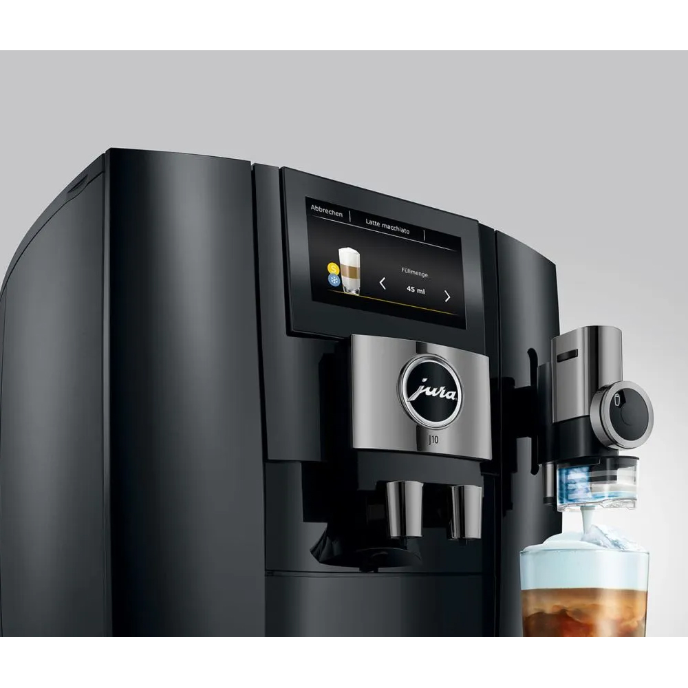 Auf Wunsch verfeinert die Maschine Ihre Getränke sogar mit subtil gesüsstem Milchschaum und sorgt so für ein besonderes Geschmackserlebnis. Modernste Technologien wie das präzise P.A.G.2+ Mahlwerk, ein intuitives Bedienkonzept sowie die One-Touch-Milchsystem-Reinigung garantieren höchsten Komfort. Das intelligente Coffee Eye der J10 erkennt automatisch, wo man die Tasse hinstellt und passt die angezeigten Getränke im Display an.