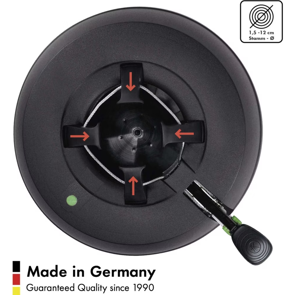 - Baum in den Ständer stellen, Fusspedal betätigen und schon steht der Baum gerade, dank Rundum-Einseil-Technik