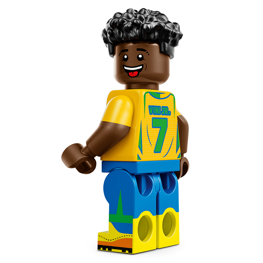 • Die Minifigur Vini Jr. erweckt das Set zum Leben und stellt den Kicker in seiner typischen Pose beim Torschuss dar
