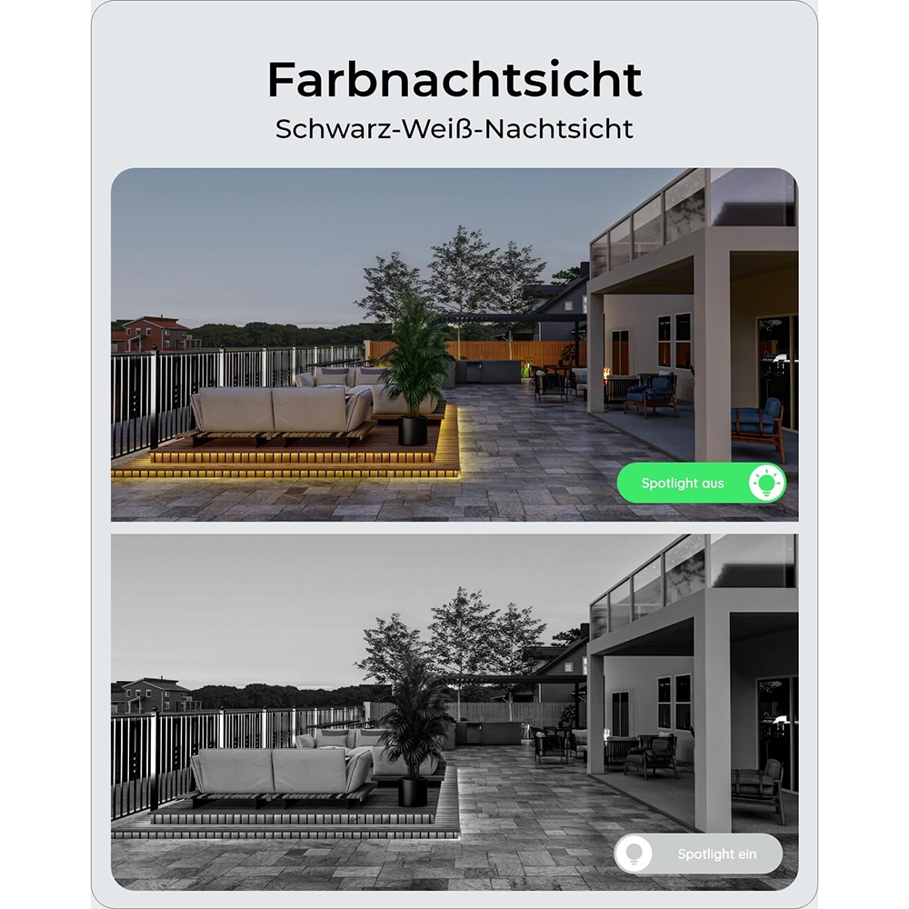 • Spotlight-Nachtsicht: klare Farbbilder auch bei Dunkelheit