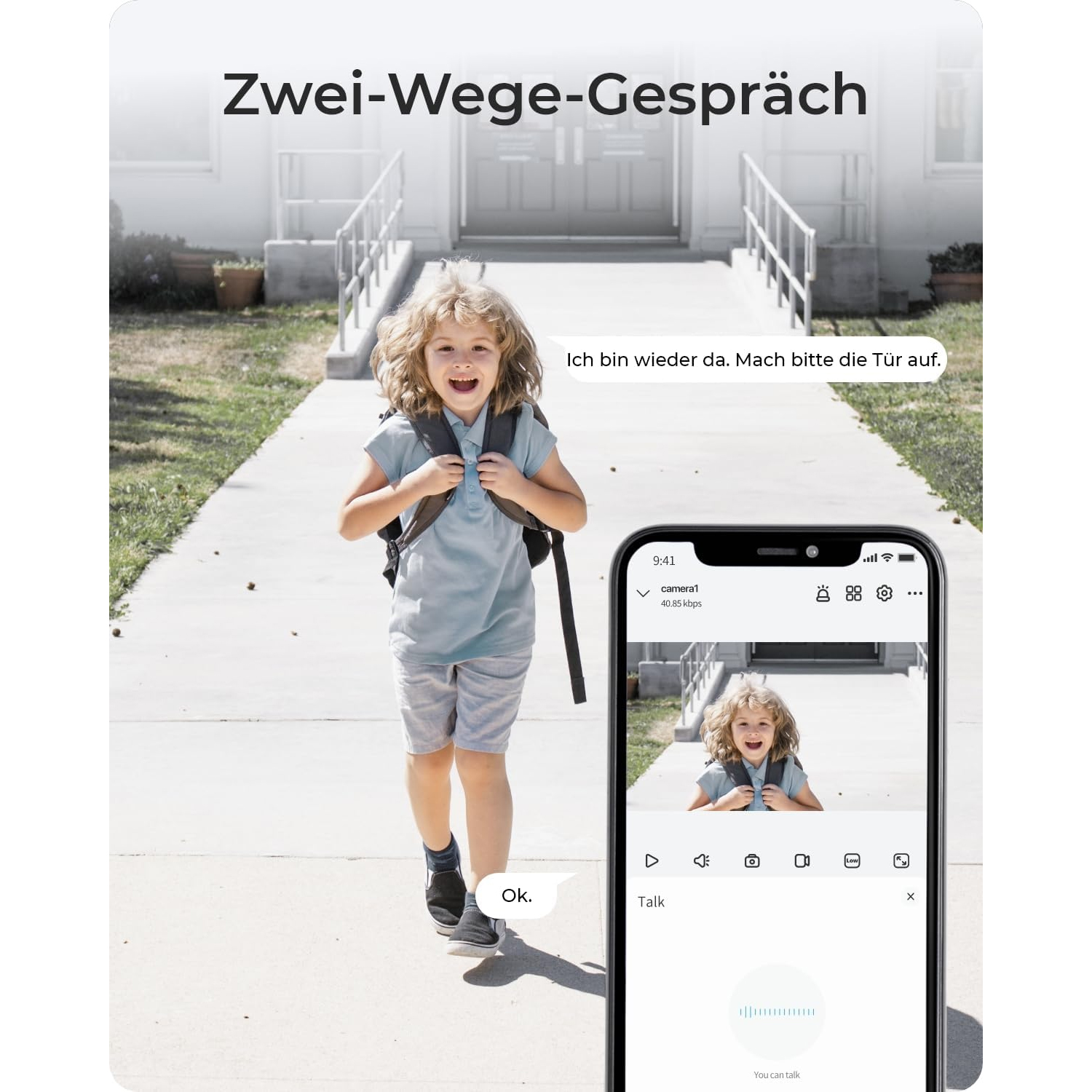 • 2-Wege-Audio: direktes Gegensprechen über die Kameras