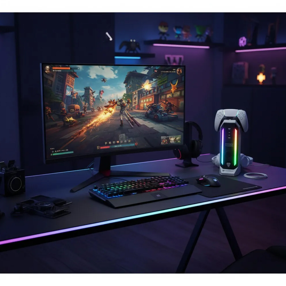 - Integrierte Ladefläche für PS5-Controller