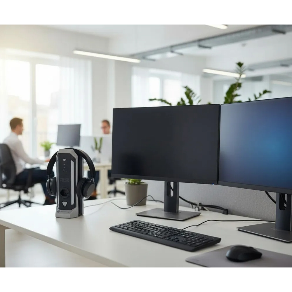 - Integrierte Headset-Halterung