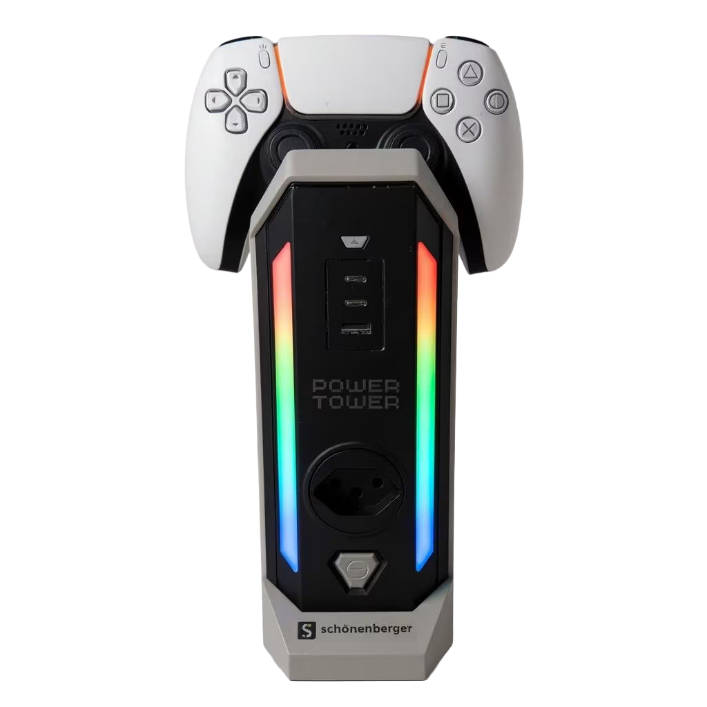 Konsolen, Gaming-PCs, Monitore, Controller und weiteres Zubehör wollen zuverlässig mit Strom versorgt und geladen werden, ohne dass der Arbeitsplatz unübersichtlich wird. Der Schönenberger Powertower wurde genau für diese Anforderungen entwickelt – als kompakte, zentralisierte Lösung für Strom und Ladeanschlüsse auf begrenztem Raum.