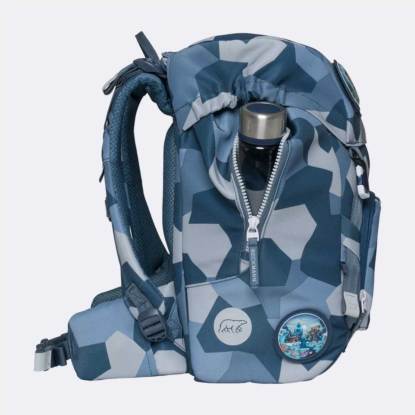 Das Tragesystem überträgt 50% des Gewichtes auf den Hüftkamm und das ergonomisch geformte, atmungsaktive Rückenpolster zusammen mit dem höhenverstellbaren Brustgurt und dem Hüftgurt machen den Rucksack zum angenehmen Begleiter für den täglichen Schulalltag Ihres Kindes. Die tollen Farben, Muster und Illustrationen überzeugen Ihr Kind und auch Sie auf den ersten Blick! Da sich die Bedürfnisse der Kinder innerhalb der Schulzeit oft verändern, sind alle Grundschulrucksäcke von Beckmann (ausser Classic Camo Rex) mit einer wendbaren Vordertasche ausgestattet. So kann das Aussehen des Rucksacks in Sekundenschnelle verändert werden.