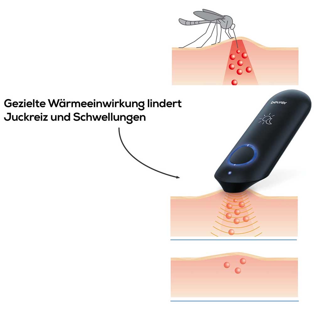 Zur Anwendung wird der Insektenstift mit der Keramikplatte einfach auf den Stich gehalten und per Knopfdruck aktiviert. Die Heilung wird durch die Hitzeentwicklung beschleunigt. Bei der Erstanwendung oder bei empfindlicher Haut wird der Stift 3 Sekunden, und für regelmässige Anwender 6 Sekunden auf die Einstichstelle gehalten. Nach Ablauf der Zeit ertönt ein akustisches Signal und der Insektenstichheiler kann von der Einstichstelle genommen werden.