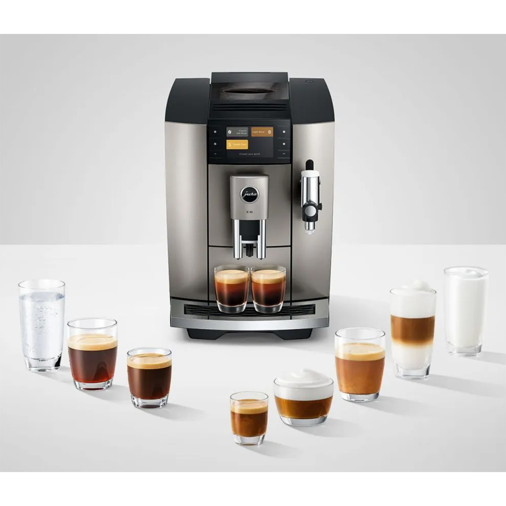 Möchten Sie dieses Modell gerne bestellen? Kontaktieren Sie uns bitte via Kontaktformular oder telefonisch unter der Nummer: 044 986 38 00. Das gefällt uns an der E8 Midnight Silver von JURA: