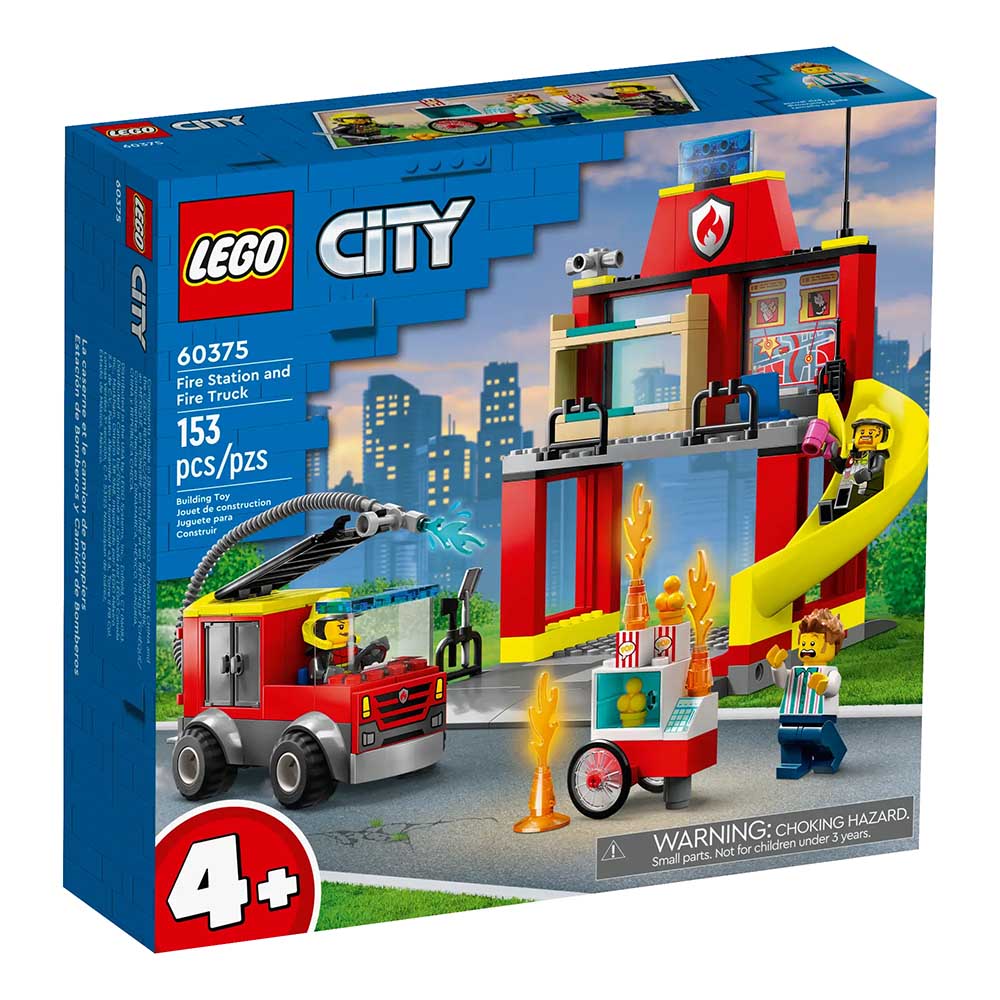 - Inhalt der Box: Alles, was du brauchst, um eine Feuerwehrstation und ein Löschauto zu bauen, sowie ein Popcornwagen, LEGO® Flammen und 3 Minifiguren – ein Verkäufer und 2 Feuerwehrleute